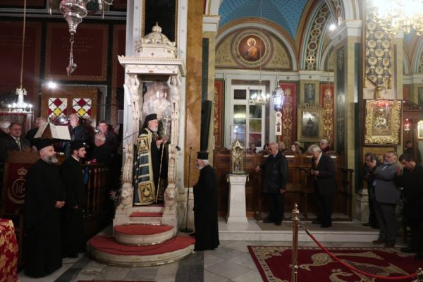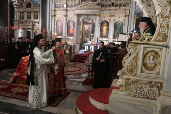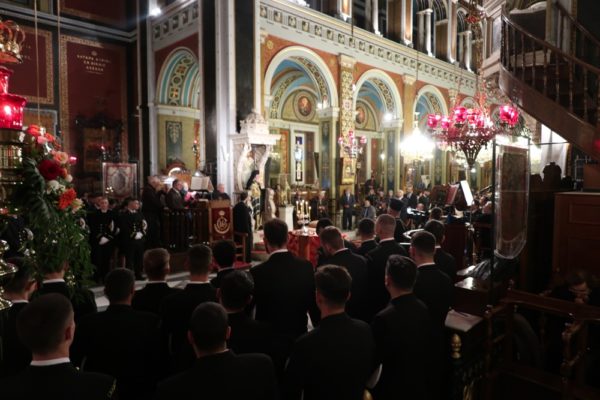Στον μεγαλοπρεπή και ιστορικό Ιερό Καθεδρικό Ναό του Αγίου Νικολάου Ερμουπόλεως τελέσθηκε χθες Μέγας Εόρτιος Αρχιερατικός Εσπερινός, προεξάρχοντος του Σεβασμιωτάτου Μητροπολίτη Σύρου, Τήνου, Άνδρου, Κέας και Μήλου κ. Δωροθέου Β‘ με τη συμμετοχή των Εφημερίων της Σύρου, του Πρωτοσυγκέλου της Ιεράς Μητροπόλεως Γλυφάδος, Αρχιμανδρίτου Νήφωνος Συριανού, του Ηγουμένου της εν Άνω Μερά Μυκόνου Ιεράς Μονής Παναγίας Τουρλιανής. Αρχιμ. Αλεξίου Παπαδόπουλου και του Διακόνου Φιλαρέτου Αδαμίδη και Κληρικών εξ Αθηνών.