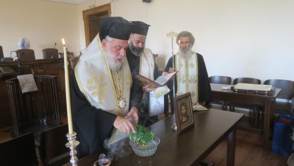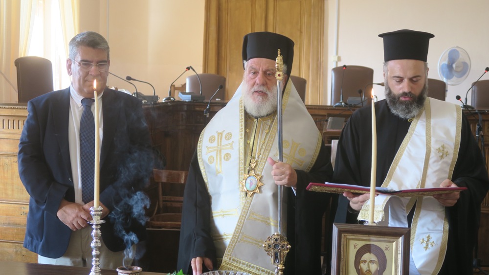 Κατόπιν προσκλήσεως του Προέδρου του Δικηγορικού Συλλόγου Κυκλάδων κ. Κωνσταντίνου Φιφλή, ο Σεβασμιώτατος κ. Δωρόθεος Β΄ μετέβη σήμερα το πρωί στο εμβληματικό Δημαρχιακό Μέγαρο Ερμουπόλεως, στις αίθουσες του οποίου στεγάζονται οι Δικαστικές Υπηρεσίες, και τέλεσε τον Αγιασμό για την έναρξη του νέου Δικαστικού Έτους, στην Αίθουσα Συνεδριάσεων του Εφετείου Αιγαίου, ενώπιον της νέας Προέδρου Εφετών Αιγαίου, του κ.. Εισαγγελέως και του κ. Αντεισαγγελέως Εφετών Αιγαίου,ο οποίος προήχθη σε Εισαγγελέα Εφετών Αθηνών, Δικαστών του Εφετείου, των κ.κ. Προέδρου, Εισαγγελέως και Αντεισαγγελέως Πρωτοδικών, Δικαστών του Πρωτοδικείου, του Προέδρου και Μελών του Δικηγορικού Συλλόγου Σύρου και Δικαστικών Υπαλλήλων.