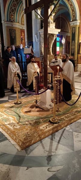 Με την παρουσία πλήθους πιστών, μεταξύ των οποίων ο επικεφαλής της μείζονος Αντιπολιτεύσεως του Δήμου Σύρου-Ερμούπολης κ. Αλέξ. Αθανασίου, πραγματοποιήθηκε χθες το απόγευμα στον Ιερό Καθεδρικό Ναό του Αγίου Νικολάου, διενοριακή Σύναξη με τη συμμετοχή όλων των Εφημερίων της νήσου, κατά την οποία τελέσθηκε η Ακολουθία των Χαιρετισμών προς τον Τίμιο Σταυρό, τις Στάσεις της οποίας έψαλαν, κατά την τάξη και κατά σειρά, όλοι οι Εφημέριοι της Σύρου.