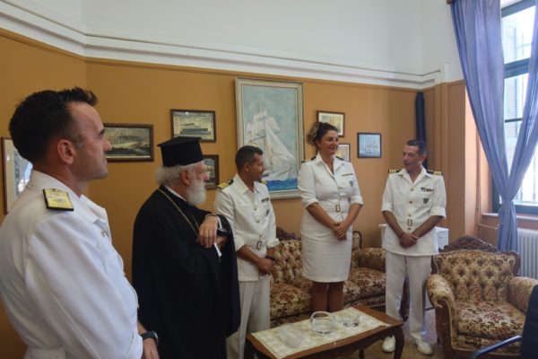 Ο Σεβασμιώτατος κ. Δωρόθεος Β΄ χαιρέτησε και συνεχάρη την νέα Διοικήτρια και της ευχήθηκε καλή επιτυχία στο έργο της και ευχαρίστησε τον αποχωρούντα Διοικητή για την προσφορά του στη ναυτική Εκπαίδευση της Σύρου και την καλή συνεργασία τους.