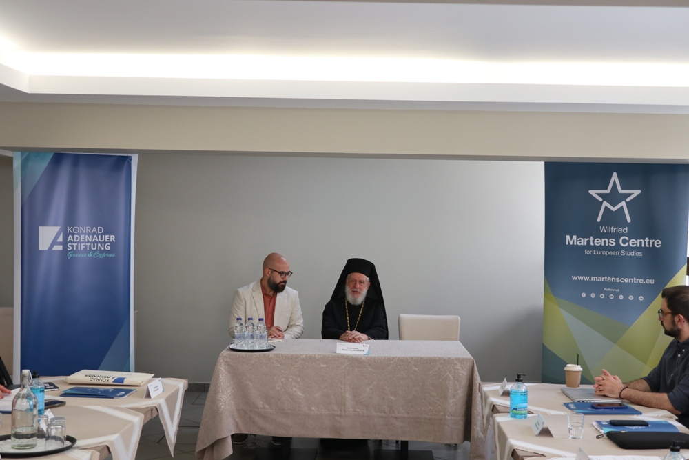 Το Ίδρυμα Αντενάουερ (Γραφείο Αθηνών σε συνεργασία με το Γραφείο της Ρώμης) και το Ίδρυμα Wilfried Martens Center for European Studies (Βρυξέλλες) διοργάνωσαν, χθες και σήμερα στη Ερμούπολη, Διεθνές Συνέδριο, με θέμα “Θρησκευτική διπλωματία μεταξύ Δύσης και Ανατολής: Ο ρόλος της θρησκείας στις σύγχρονες ευρωπαϊκές υποθέσεις”, στο οποίο ο Μητροπολίτης Σύρου, Τήνου, Άνδρου, Κέας και Μήλου κ. Δωρόθεος Β’ εξεπροσώπησε τον Μακαριώτατο Αρχιεπίσκοπο Αθηνών και Πάσης Ελλάδος κ.κ. Ιερώνυμο Β’ και την Ιερά Σύνοδο.