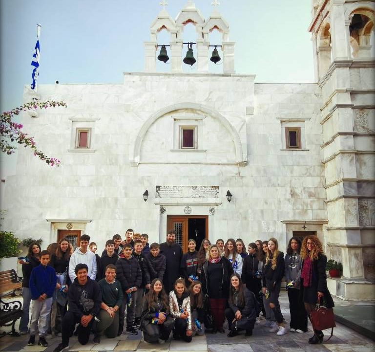 Στο πλαίσιο του μαθήματος των θρησκευτικών και της εποπτικής διδασκαλίας του, οι μαθητές και οι μαθήτριες του Γυμνασίου της Άνω Μεράς Μυκόνου, με την Θεολόγο Καθηγήτρια κα Ανδρομάχη Τριανταφυλλίδου, επεσκέφθησαν, το συγκρότημα της Ιεράς Μονής Παναγίας Τουρλιανής.
