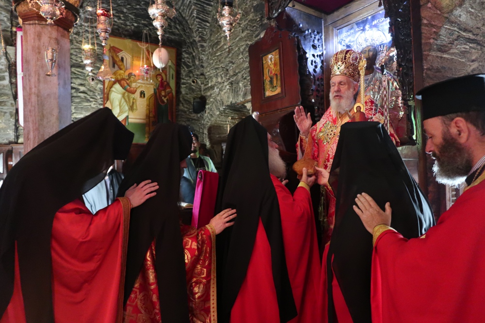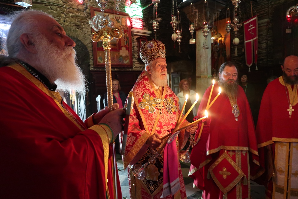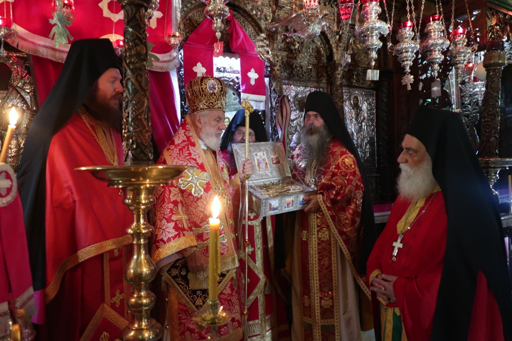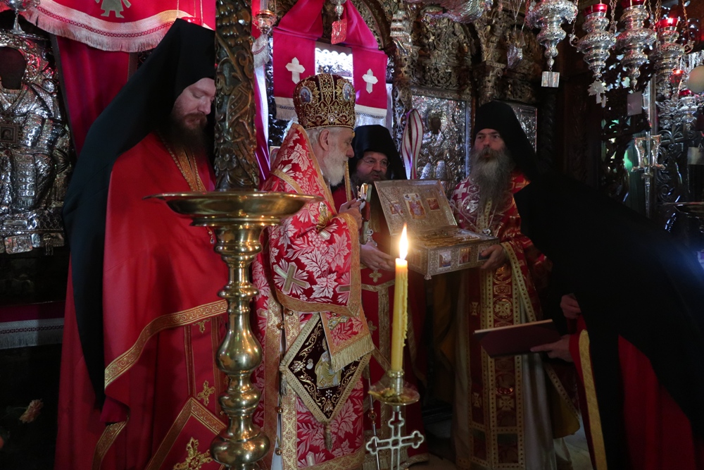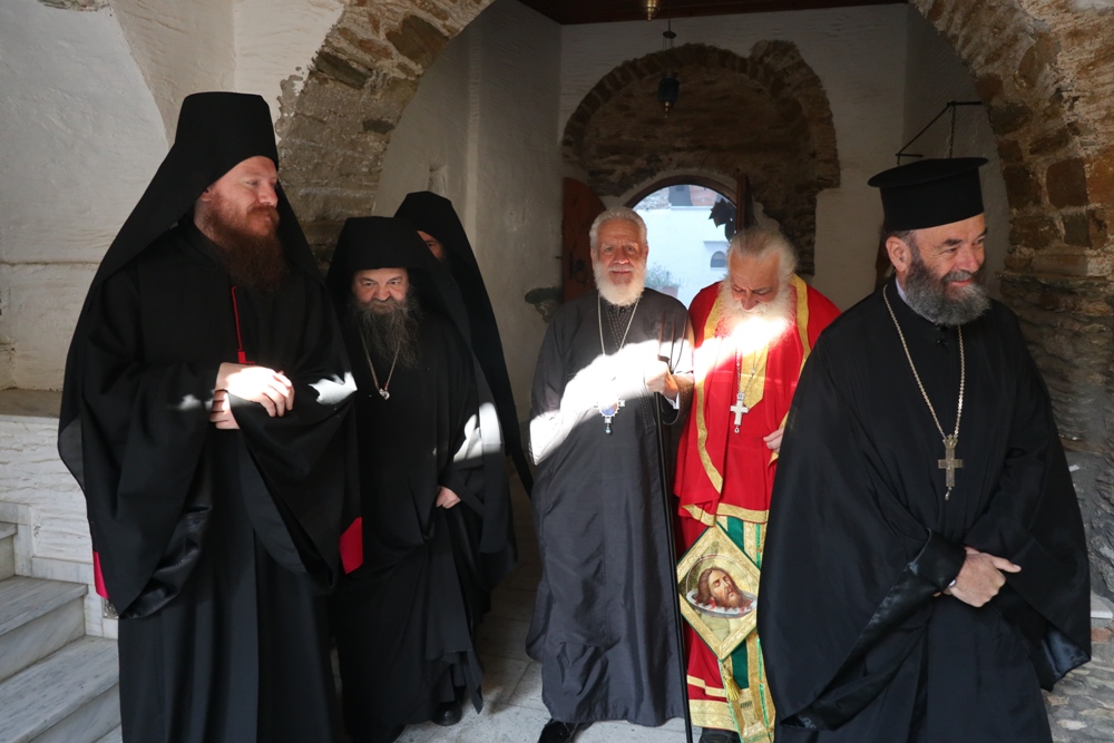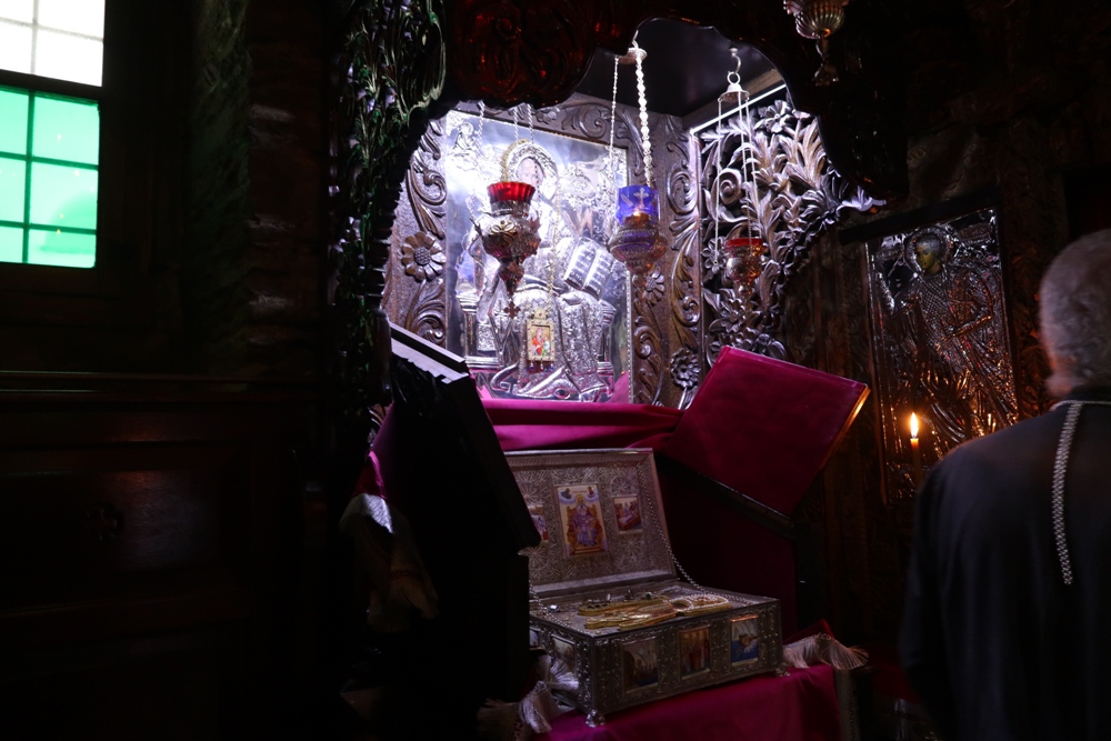 Σήμερα το πρωί, ιερούργησε στο Καθολικό της Ιεράς Μονής Αγίου Νικολάου, στην περιοχή Αποικίων, επί τη ανακομιδή των Λειψάνων του Αγίου, συμπαραστατούμενος από τον Ηγούμενο, Αρχιμ. Δωρόθεο Θέμελη, τους Πατέρες της Μονής, Αρχιμανδρίτες Ευθύμιο και Βονιφάτιο και τον Ιερομόναχο Ανίκητο, και τους Πρωτοπρεσβυτέρους Μιχαήλ Καλαμπούκη κα Αντώνιο Τριανταφύλλου.