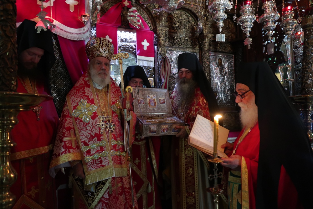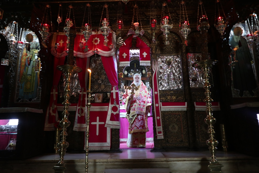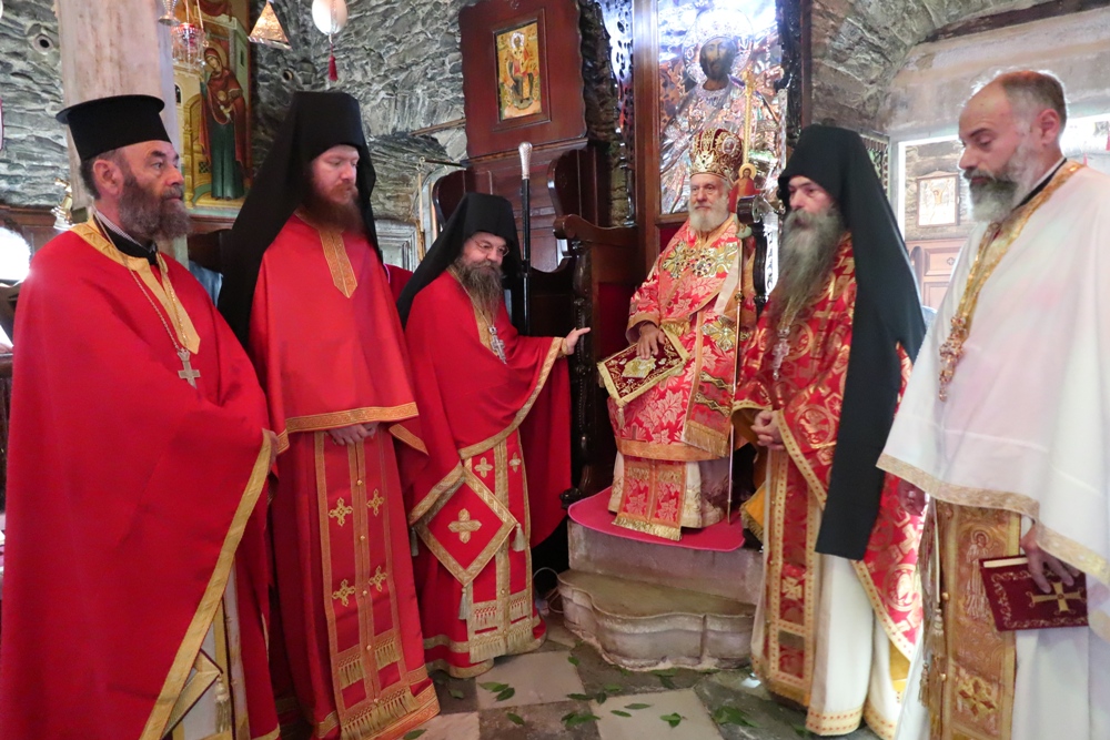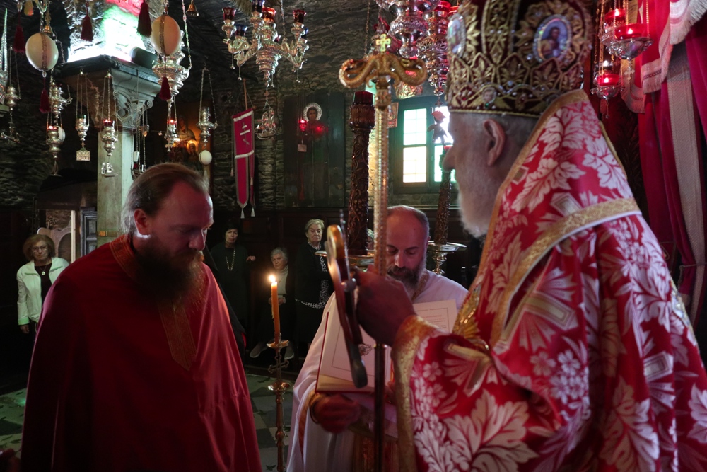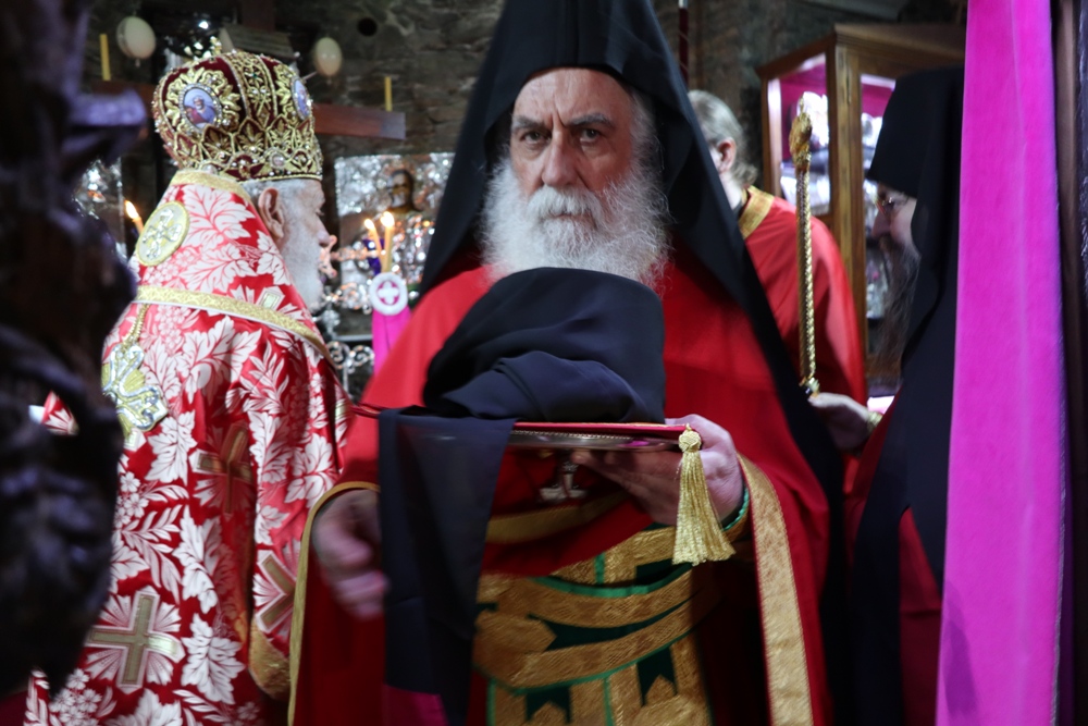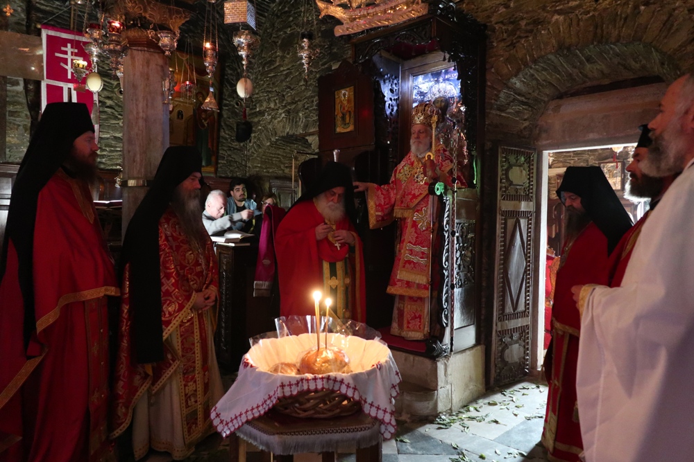 Σήμερα το πρωί, ιερούργησε στο Καθολικό της Ιεράς Μονής Αγίου Νικολάου, στην περιοχή Αποικίων, επί τη ανακομιδή των Λειψάνων του Αγίου, συμπαραστατούμενος από τον Ηγούμενο, Αρχιμ. Δωρόθεο Θέμελη, τους Πατέρες της Μονής, Αρχιμανδρίτες Ευθύμιο και Βονιφάτιο και τον Ιερομόναχο Ανίκητο, και τους Πρωτοπρεσβυτέρους Μιχαήλ Καλαμπούκη κα Αντώνιο Τριανταφύλλου.