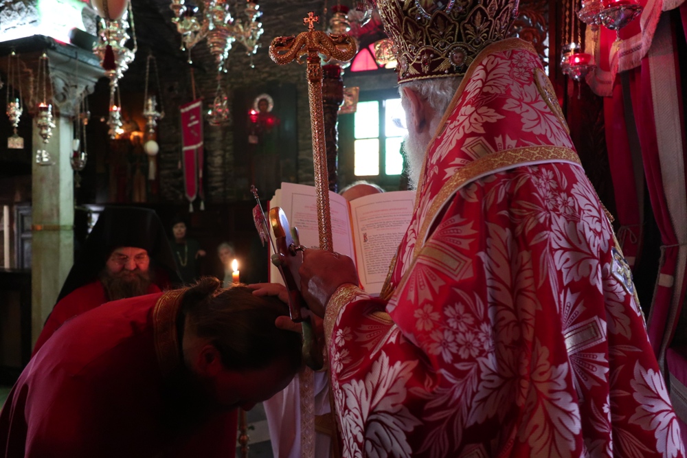 Ο Σεβασμιώτατος κ. Δωρόθεος Β’, προ του πέρατος της Θείας Λειτουργίας, ανέπεμψε δέηση υπέρ των Ναυτιλομένων ενώπιον των ιερών Λειψάνων του Προστάτου τους Αγίου Νικολάου και στη συνέχεια χειροθέτησε Αρχιμανδρίτη τον Ιερομόναχο Ανίκητο.