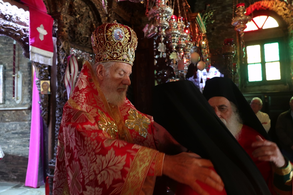 Στη σύντομη δε προσλαλιά του, ο Σεβασμιώτατος κ. Δωρόθεος Β’ ευχαρίστησε τον Ηγούμενο, Αρχιμ. Δωρόθεο, για την ανύστακτη μέριμνά του προς την Ιερά Μονή, συνεχάρη την Αδελφότητα για την μεταξύ τους αγάπη και ευχήθηκε σε όλους και τους προσελθόντες πιστούς για την εορτή της Μεσοπεντηκοστής.