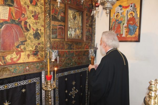 Ο Σεβασμιώτατος προσκύνησε στην Ιερά Μονή Ευχαρίστησε και συνεχάρη τον Ηγούμενο, Αρχιμ. Ευδόκιμο Καραπαντελάκη, για την ανύστακτη μέριμνά του προς την Ιερά Μονή και τον εξωραϊσμό της και του ευχήθηκε για το Άγιο Πάσχα.