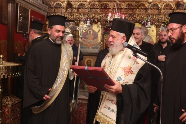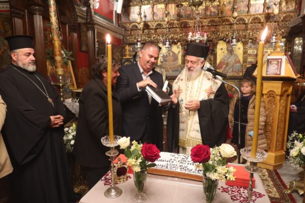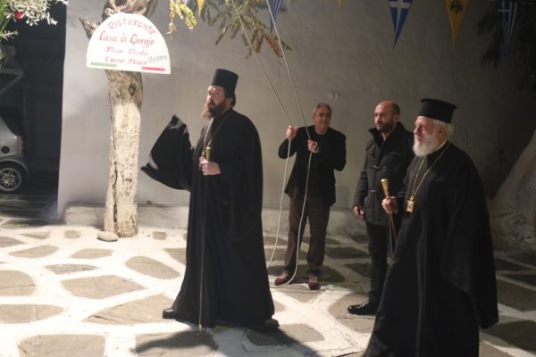 Τέλος, διένειμε την Αγιοβασιλειόπιτα με ωραία δώρα, που είχε ετοιμάσει και επιμεληθεί ο Αρχιερατικός Επίτροπος Μυκόνου, Πρωτοπρ. Πέτρος Μαραγκός.