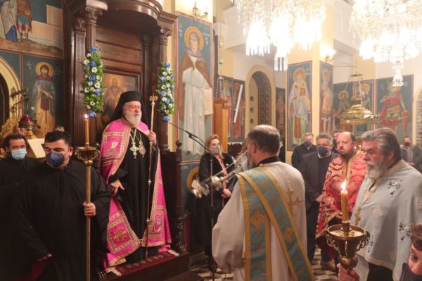Συμπαραστατούμενος από τον Εφημέριο του Ναού, Αρχιμ. Καλλίνικο, και Εφημερίους των πέριξ περιοχών, ο Σεβασμιώτατος κ. Δωρόθεος Β’ προέστη χθες του Εσπερινού στον Ιερό Ναό του Αγίου Νικολάου Γαυρίου Άνδρου, με την παρουσία της Βουλευτού Κυκλάδων κ. Αικατερίνης Μονογυιού, του Δημάρχου Άνδρου, Αντιδημάρχων, Προέδρων Τοπικών Κοινοτήτων, Δημοτικών Συμβούλων, του Διοικητή του Πυροσβεστικού Κλιμακίου Άνδρου, του Λιμενάρχη Γαυρίου, της Υποδιοικητού του Αστυνομικού Τμήματος Γαυρίου και πολλών πιστών εντός και εκτός του Ναού, οι οποίοι προσήλθαν τηρούντες τα ισχύοντα μέτρα υγειονομικής προστασίας.