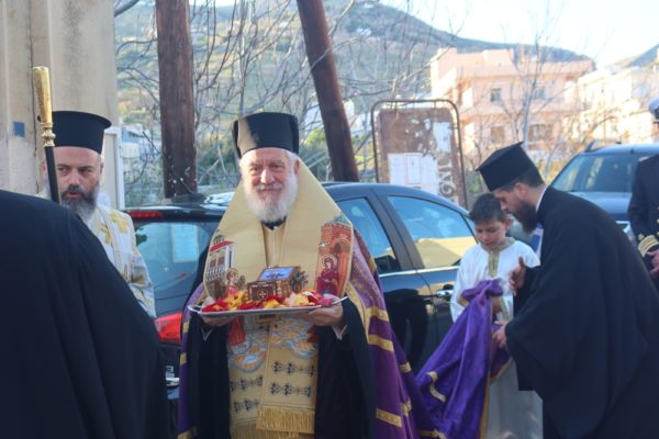 Μετά την ειδική Ακολουθία επί τη υποδοχή του ιερού Λειψάνου, το οποίο εναπετέθη σε περίτεχνο μαρμάρινο προσκυνητάριο, έμπροσθεν της Εικόνος του, προς διηνεκή ευλογία των πιστών, τελέσθηκε ο Κατανυκτικός Εσπερινός, προεξάρχοντος του Σεβασμιωτάτου κ. Δωροθέου Β’, ο οποίος με εγκάρδιους λόγους συνεχάρη τον Εφημέριο του Ναού, Πρεσβύτερο Νικόλαο Χαρούλη για την εύορκο και ευδόκιμο διακονία του.