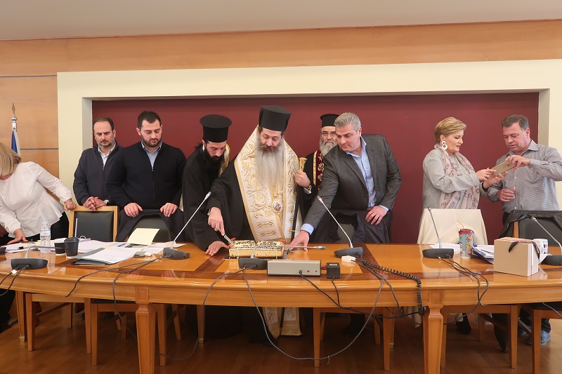 Μετά από πρόσκληση του Περιφερειάρχου Στερεάς Ελλάδος κ. Φάνη Σπανού, ο Σεβασμιώτατος Μητροπολίτης Φθιώτιδος, κ. Συμεών, συνοδευόμενος από τον Γενικό Αρχιερατικό Επίτροπο της Ιεράς Μητροπόλεως Αιδεσιμολ. Πρωτ. π. Νεόφυτο Ραφαηλίδη και τον Ιεροδιάκονο π. Νικόλαο Πολυζώη, μετέβη το μεσημέρι της Τετάρτης 29 Ιανουαρίου, στην Αίθουσα Συνεδριάσεων του Περιφερειακού Συμβουλίου στη Λαμία, προκειμένου να παραστεί στο πρώτο Περιφερειακό Συμβούλιο Στερεάς Ελλάδος και να ευλογήσει την αγιοβασιλόπιτα της Περιφέρειας, ευχόμενος πατρικώς σε όλους καλή και ευλογημένη η νέα χρονιά.