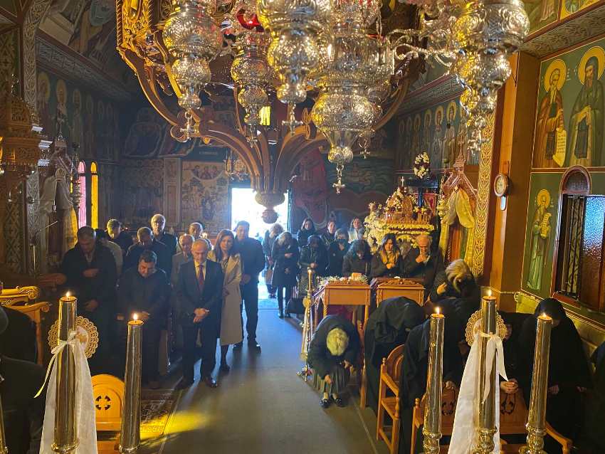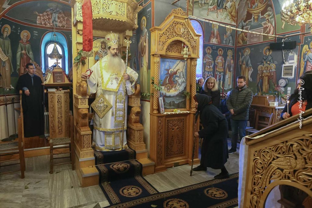 Τον κ. Συμεών υποδέχθηκαν με περισσή αγάπη και σεβασμό οι δύο μοναχές της Μονής, η Προεστώσα Αδελφή Καικιλία και η αδελφή Χρυσοστόμη, ενώ τον Σεβασμιώτατο στην Αρχιερατική Θεία Λειτουργία πλαισίωσαν, ο Πνευματικός Γέροντας της Μονής Αρχιμ. π. Μάξιμος Αναστόπουλος, ο Καθηγούμενος της Μονής Αγίου Αθανασίου Περιβλέπτου Αρχιμ. π. Παρθένιος Κουκούλης και οι Εφημέριοι της ορεινής συνοριογραμμής της Δυτικής Φθιώτιδος Πουγκακίων, Αρχιμ. π. Σωφρόνιος και Γαρδικίου π. Ιωάννης.