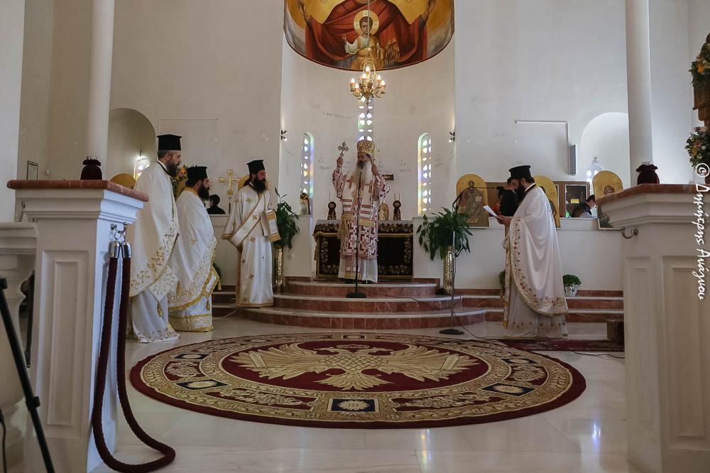 Στο κήρυγμά του ο κ. Συμεών αναφέρθηκε στα πρόσωπα των τιμωμένων Αγίων μαρτύρων γυναικών, Πίστεως, Ελπίδος και Αγάπης και της μητρός αυτών Αγίας Σοφίας, συσχετίζοντας την ζωή, την ομολογία της πίστεως τους και το μαρτύριο τους με τον Σταυρό του Χριστού, υπογραμμίζοντας την σχέση μεταξύ της θεωρίας και της πράξεως της πίστεως στον Χριστό, μέσα από τα ιερά αναγνώσματα της Κυριακής.