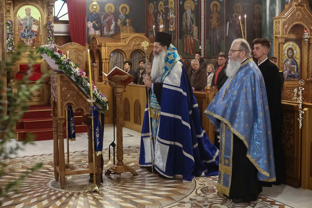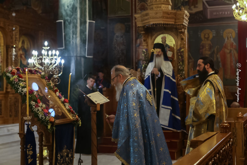 Στην Ιερά Ακολουθία, η οποία μεταδόθηκε απευθείας από τηλεοράσεως, ραδιοφώνου και διαδικτύου, χοροστάτησε ο Σεβασμιώτατος Μητροπολίτης Φθιώτιδος κ. Συμεών.