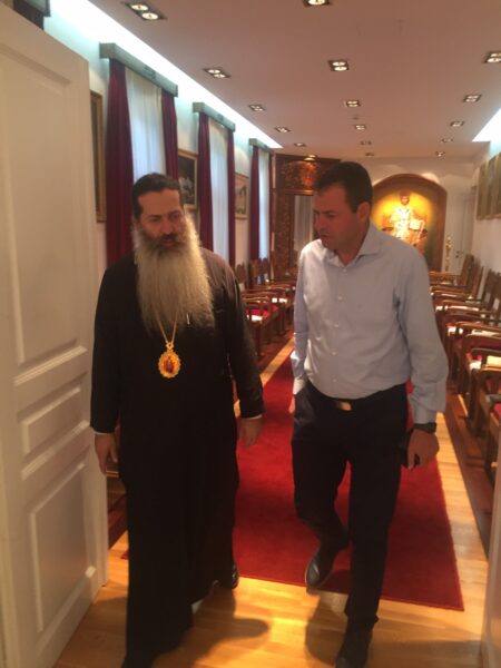 Ο κ. Καραγιάννης επίσης εξέφρασε την συγκίνηση του για την επίσκεψη αυτή, αλλά και τον ιδιαίτερο σεβασμό και θαυμασμό, που τρέφει προς το πρόσωπο του Σεβασμιωτάτου κ. Συμεών.