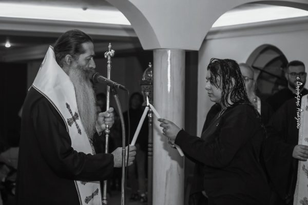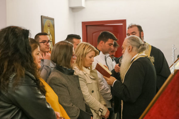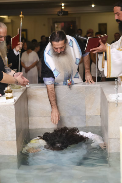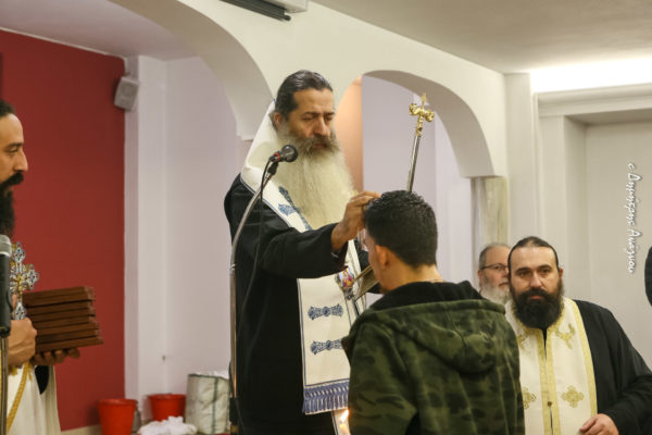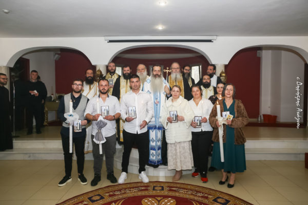 Τέλος, ο Σεβασμιώτατος κ. Συμεών προσέφερε ως ευλογία σε όλους τους νεοφωτίστους από μία μικρή φορητή εικόνα του Οσίου Βησσαρίωνος του Αγαθωνίτη.