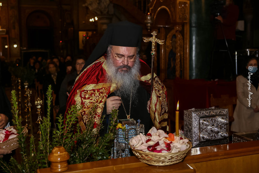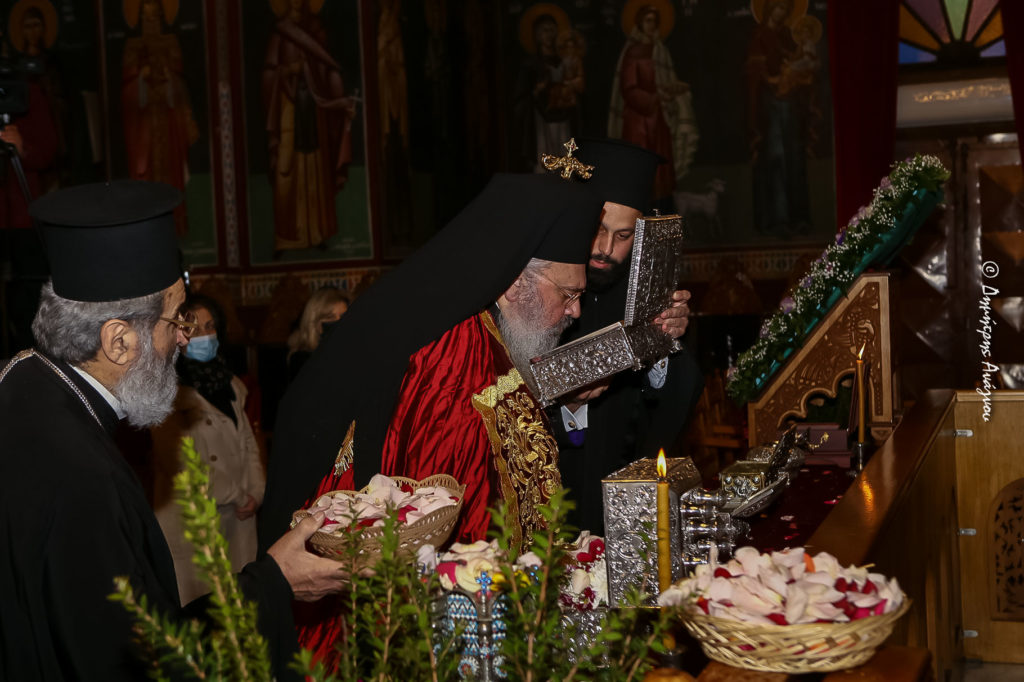 Στον Πανηγυρικό Πολυχαρχιερατικό Εσπερινό χοροστάτησε ο Σεβασμιώτατος Μητροπολίτης Λαγκαδά, Λητής και Ρεντίνης κ. Πλάτων, συγχοροστατούντων των Σεβασμιωτάτων Μητροπολιτών Μαρωνείας και Κομοτηνής κ. Παντελεήμονος και του οικείου Ποιμενάρχου, Σεβασμιωτάτου Μητροπολίτου Φθιώτιδος κ. Συμεών.