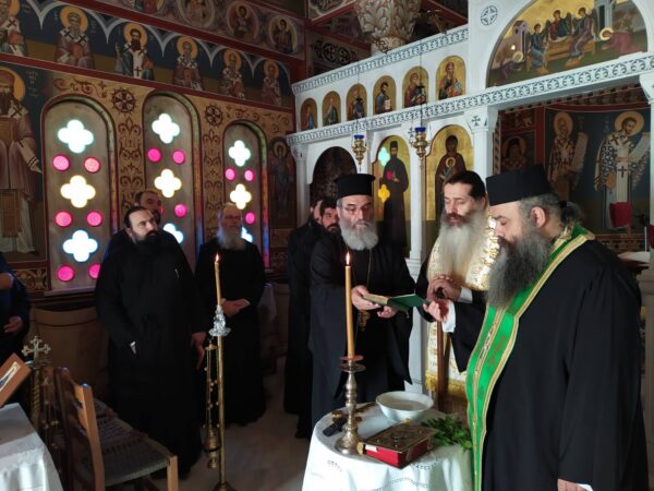 Ευχαριστώ και τον Άγιο Καθηγούμενο της Ιεράς Μονής Αγάθωνος, ο οποίος είναι κοντά μας σήμερα συμπροσευχόμενος, ευχαριστώ και πάλι όλους τους Αγίους Πατέρες και όλους τους συνεργάτες μας, διότι αυτή τη δύσκολη περίοδο υπερέβαλαν τον εαυτό τους, έδωσαν όλο τους το είναι και συμπαραστάθηκαν και στην ελαχιστότητά μου, προκειμένου να ανταπεξέλθουμε στις απαιτήσεις, αλλά και στις ιδιαιτερότητες, τις οποίες ζήσαμε όλη αυτή την περίοδο, γι’ αυτό τους ευχαριστώ, τους ευλογώ και και εύχομαι ο Θεός να ευλογεί τις οικογένειές σας, να ευλογεί την ζωή σας και έτσι με υγεία και με φόβο Θεού και με αγάπη για τον άνθρωπο να συνεχίσουμε τη διακονία μας.