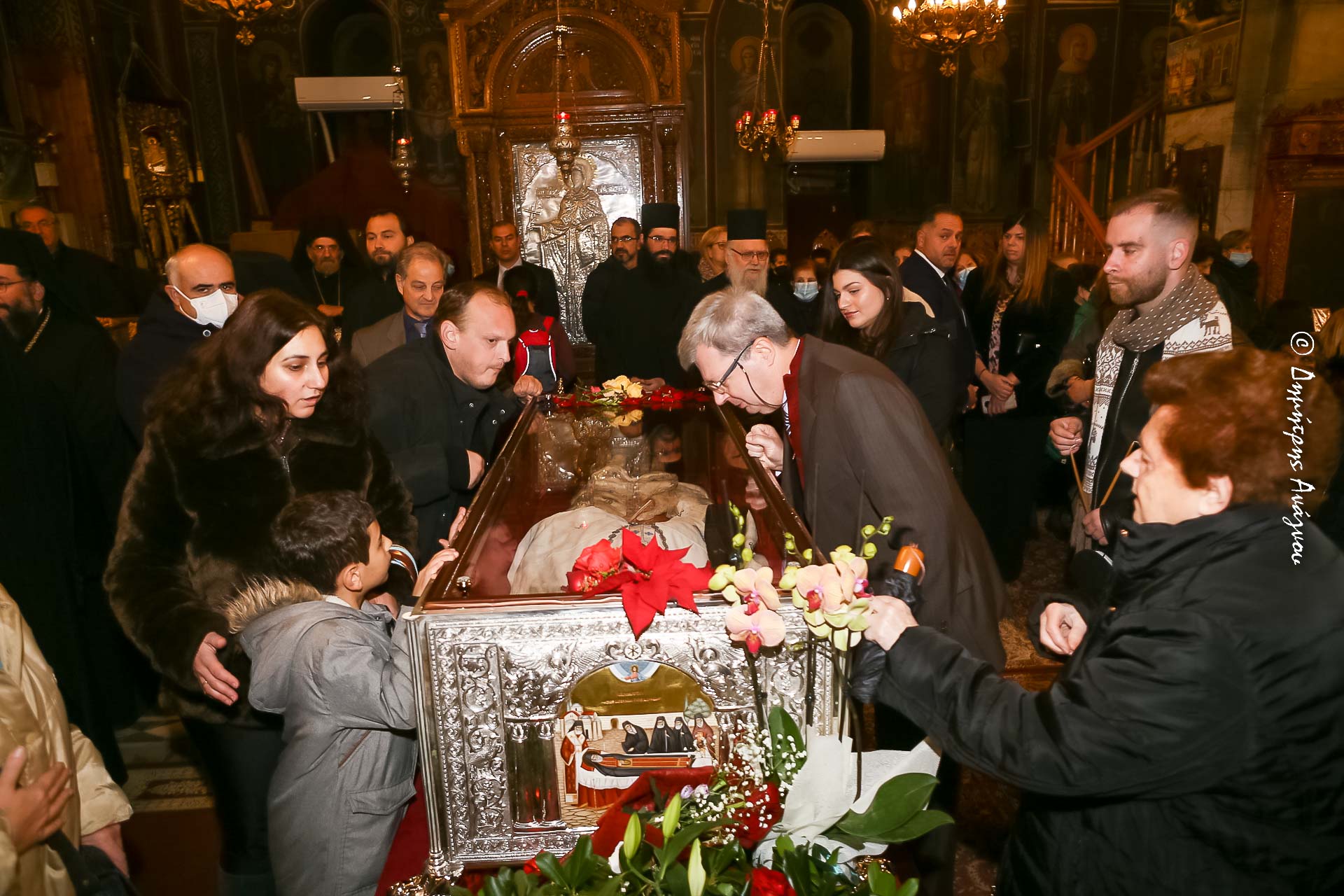 Ενώπιον του Ιερού Σκηνώματος του Οσίου, τελέσθηκε ο Μέγας Αναστάσιμος Πολυαρχιερατικός Εσπερινός χοροστατούντος του Διευθυντού του εν Αθήναις Γραφείου του Οικουμενικού Πατριαρχείου Μητροπολίτη Λαοδικείας κ.κ. Θεοδώρητου, ως εκπροσώπου του Παναγιωτάτου Οικουμενικού Πατριάρχου κ. κ. Βαρθολομαίου, του Σεβασμιωτάτου Μητροπολίτου Ζιχνών και Νευροκοπίου κ. Ιεροθέου, Αντιπροέδρου της Διαρκούς Ιεράς Συνόδου και εκπροσώπου του Αρχιεπισκόπου Αθηνών και πάσης Ελλαδος κ.κ. Ιερωνύμου και συγχοροστατούντων πλειάδος Ιεραρχών της Ελλαδικής Εκκλησίας.