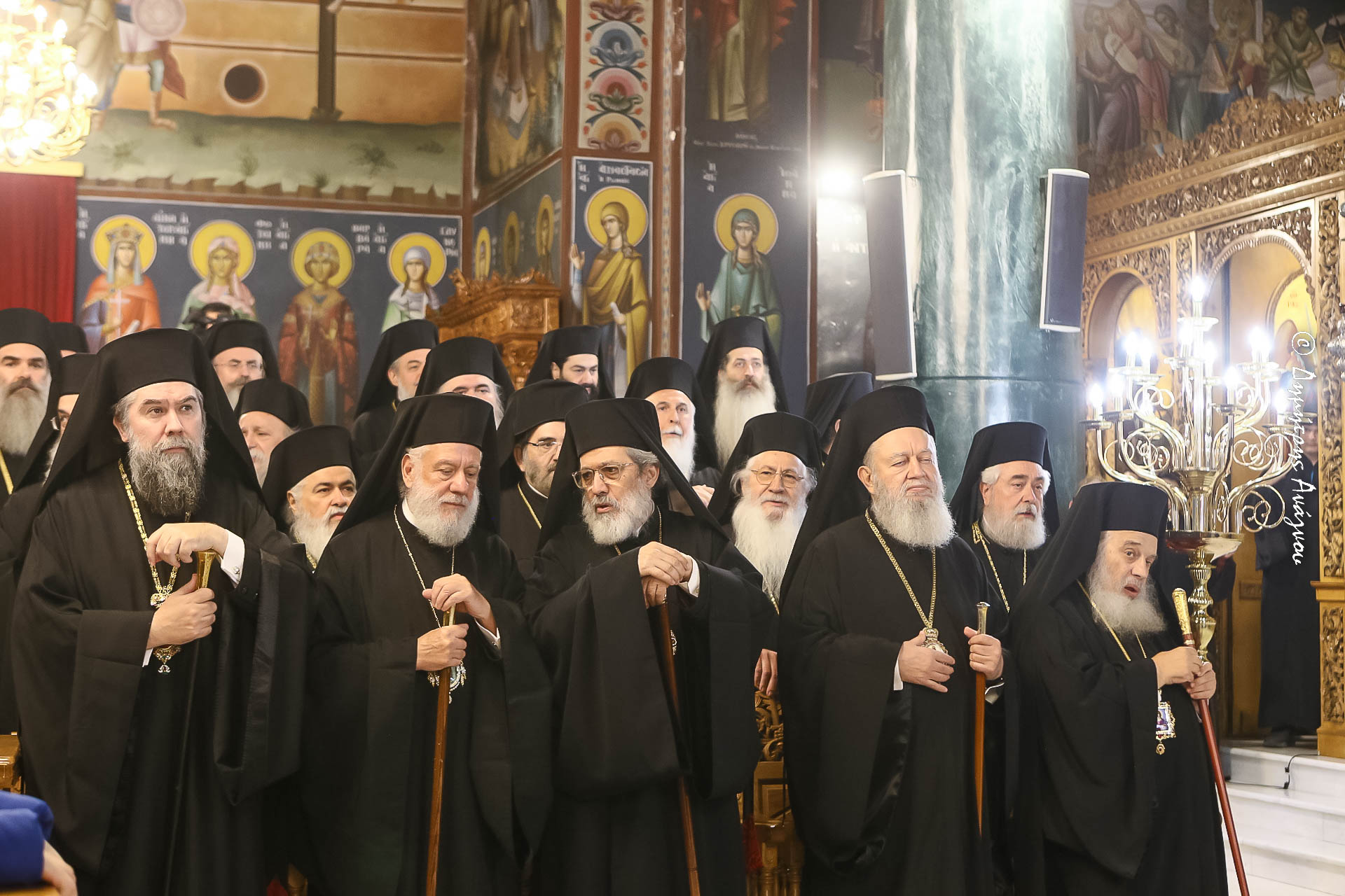 Ο Σεβασμιώτατος Μητροπολίτης Ζιχνών και Νευροκοπίου κ. Ιερόθεος, Αντιπρόεδρος της Διαρκούς Ιεράς Συνόδου της Εκκλησίας της Ελλάδος, και οι ί Ιεράρχες της Εκκλησίας της Ελλάδος, Σεβασμιώτατοι: Ναυπάκτου και Αγίου Βλασίου κ. Ιερόθεος, Σερρών και Νιγρίτης κ. Θεολόγος, Σύρου, Τήνου, Άνδρου, Κέας, Μήλου, Δήλου και Μυκόνου κ. Δωρόθεος, Σιδηροκάστρου κ. Μακάριος, Χαλκίδος, Ιστιαίας και Βορείων Σποράδων κ. Χρυσόστομος, Εδέσσης, Πέλλης και Αλμωπίας κ. Ιωήλ, Αλεξανδρουπόλεως κ. Άνθιμος, Νεαπόλεως και Σταυρουπόλεως κ. Βαρνάβας, Κρήνης κ. Κύριλλος, Θηβών, Λεβαδείας και Αυλίδος κ. Γεώργιος, Φωκίδος κ. Θεόκτιστος, Ελασσώνος κ. Χαρίτων, Γρεβενών κ. Δαυίδ, Νέας Κρήνης και Καλαμαριάς κ. Ιουστίνος, Λήμνου και Αγίου Ευστρατίου κ. Ιερόθεος, Καστορίας κ. Καλλίνικος, Πολυανής και Κιλκισίου κ. Βαρθολομαίος, Περιστερίου κ. Γρηγόριος, Γόρτυνος και Μεγαλοπόλεως κ. Νικηφόρος και ο Θεοφιλέστατος Ευρίπου κ. Χρυσόστομος.