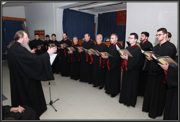 Η εκδήλωση ξεκίνησε με την χορωδία της ΓΕΧΑ Κατερίνης με τους επίκαιρους ύμνους του Τριωδίου που έψαλλε και προετοίμασε το πολυπληθές ακροατήριο για την ομιλία του π. Εφραίμ.