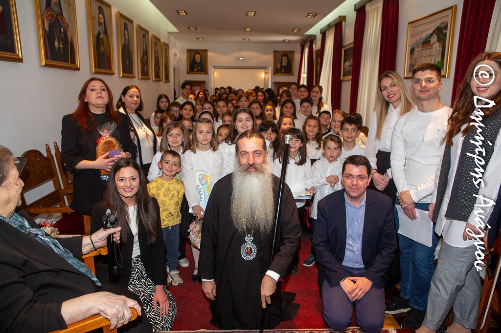 Για ακόμη μία φορά, ο Σεβασμιώτατος Μητροπολίτης Φθιώτιδος κ. Συμεών δέχθηκε στην αίθουσα του Θρόνου του Ιερού Επισκοπείου πλήθος μικρών και μεγάλων πνευματικών του παιδιών, μέλη συλλόγων, φορέων, κατηχητικών σχολείων διαφόρων Ενοριών της πόλεως, αλλά και μεμονωμένων παρεών, τα οποία έψαλλαν τα παραδοσιακά κάλαντα του Λαζάρου, προμηνύοντας την χαρά της Αναστάσεως του Χριστού.