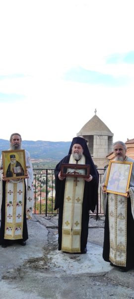 Σύμφωνα με το πρόγραμμα χθες 6η μέρα της Ιεράς Λιτανείας, τα Ιερά Θησαυρίσματα, το απότμημα της Τιμίας Χειρός, η Ιερά Εικόνα του Αγίου Λουκά, καθώς και η Ιερά Εικόνα του Οσίου Βησσαρίωνος του Αγαθωνίτου το πρωί λιτανεύθηκαν στην Ιερά Μονή του Αγίου Αθανασίου Ομβριακής, με την αγιαστική παρουσία και της Τιμίας Κάρας του εορταζομένου Οσίου Ιωάννου του Ερημίτου, στο Καθολικό της οποίας τελέσθηκε Θεία Λειτουργία.