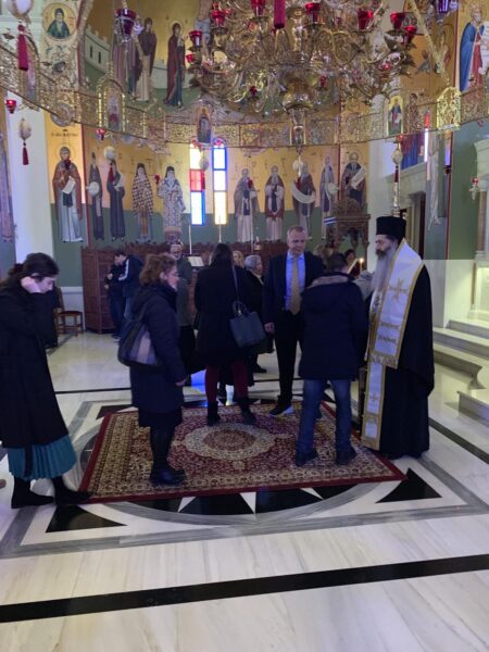 Κατά την φιλοξενία που παρέθεσε η Αδελφότητα στο Αρχονταρίκι της Μονής ο κ. Συμεών εξέφρασε την ευγνωμοσύνη του προς τον Μακαριώτατο πνευματικό του πατέρα, που του έχει δώσει την άδεια να έχει τελέσει στην Μονή τα τελευταία δυο χρόνια, τρεις κουρές μοναζουσών, την ενθρόνιση της νέας Καθηγουμένης Θεοφανούς και τώρα την ρασοφορία της μοναχής Στυλιανής.