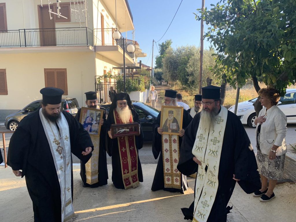 Τα Ιερά Κειμήλια μετέφερε μαζί με τις ευλογίες και την αγάπη του Μητροπολίτη Φθιώτιδος κ. Συμεών, ο Άγιος Πρωτοσύγκελλος της Ιεράς Μητροπόλεως Αρχιμανδρίτης π. Εφραίμ Τριανταφυλλόπουλος.