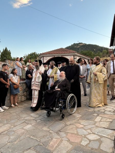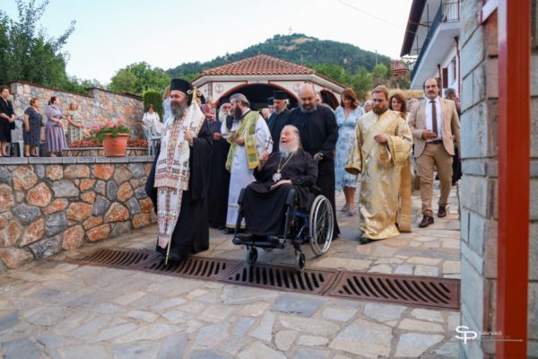 Στο τέλος του Εσπερινού, ο Γέροντας Μητροπολίτης κ. Θεόκλητος απηύθυνε θερμό χαιρετισμό και ευχαρίστησε τον Σεβασμιώτατο κ. Ειρηναίο για την προσευχητική και πατρική του συμπαράσταση προς την Αδελφότητα.