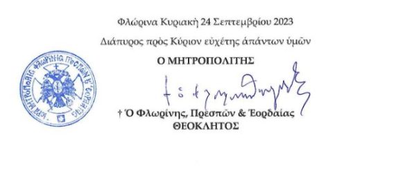 Ολόκληρη η αποχαιρετιστήρια Εγκύκλιος του Μητροπολίτη Φλωρίνης κ. Θεοκλήτου: