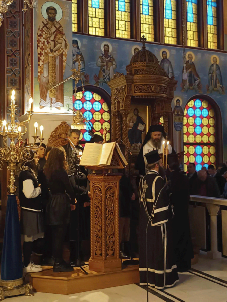 – Τέλεσε Προηγιασμένη Θεία Λειτουργία στον Ιερό Ναό Αγίου Στεφάνου Πτολεμαΐδας. Κατά την ακολουθία έψαλλαν οι μαθήτριες και οι μαθητές των Μουσικών Σχολείων Κατερίνης και Πτολεμαΐδας.