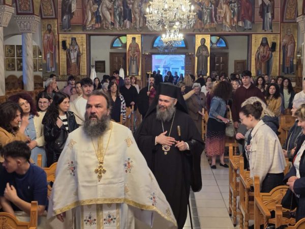 – Χοροστάτησε στη Θεία Λειτουργία στον Ιερό Ναό Αγίων Κωνσταντίνου και Ελένης Αμυνταίου για τους μαθητές που διαγωνίζονται στις Πανελλήνιες Εξετάσεις και μίλησε καταλλήλως.