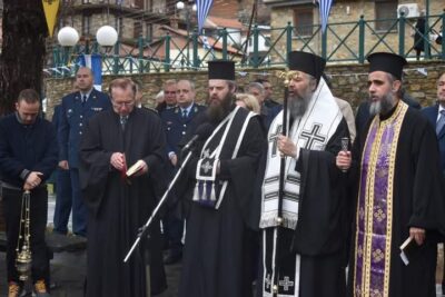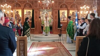 – Τέλεσε Μνημόσυνο στον Ιερό Ναό Αγίας Τριάδας Δροσοπηγής για τα 81 χρόνια από το Ολοκαύτωμα της Μαρτυρικής Κοινότητας (4 Απριλίου 1944) και στη συνεχεία Επιμνημόσυνη Δέηση στο Μνημείο της κεντρικής πλατείας, παρουσία των τοπικών αρχών.