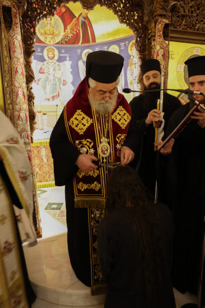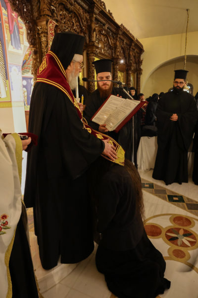 Την Τρίτη το απόγευμα, ανήμερα της εορτής του οικείου Ποιμενάρχου, κατά τη διάρκεια της ακολουθίας του Εσπερινού, ο Σεβασμιώτατος τέλεσε τη μοναχική κουρά στο ανδρώο Ησυχαστήριο των Αγίων Αυγουστίνου Ιππώνος και Σεραφείμ του Σαρώφ, του δοκίμου Ιωάννη Λύκου, πτυχιούχου Αρτοποιίας και Ζαχαροπλαστικής και έλαβε το όνομα Αμβρόσιος μοναχός όπου πλέον εγκαταβιούν στο ανδρώο Ησυχαστήριο 38 μοναχοί και δόκιμοι.