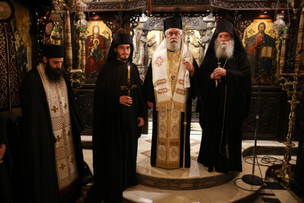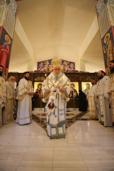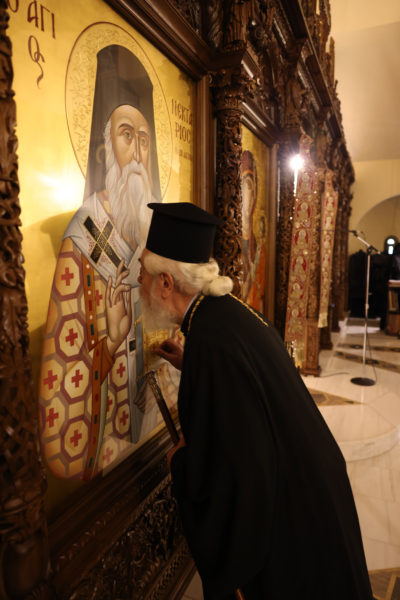 Πλήθος κόσμου κατέκλισε το Καθολικό του Ιερού Ησυχαστηρίου όπου ήρθαν να ευχηθούν στον Πατέρα τους, παρόλο που δεν εόρτασε εφέτος επίσημα, αλλά με την παρουσία τους, τίμησαν την εορτή του, οι συμπροσευχόμενοι Σεβ. Μητροπολίτες Ναυπάκτου και Αγίου Βλασίου κ. Ιερόθεος και Απολλωνίας και Φίερι κ. Νικόλαος (Εκκλησία της Αλβανίας).