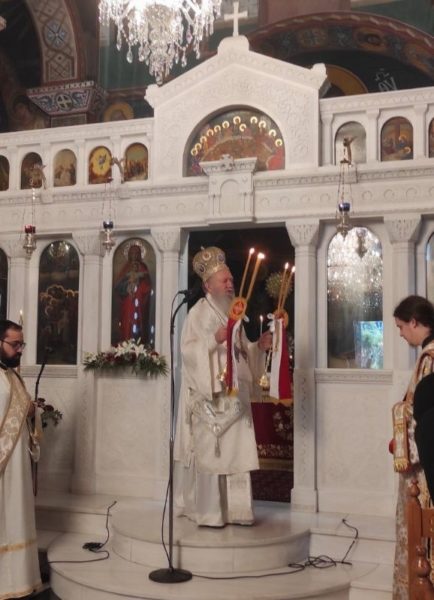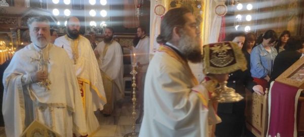 Πριν την απόλυση δε, ευχήθηκε πασχαλίως προς τους εκκλησιασθέντες και εξέφρασε την ευγνωμοσύνη του σε όσους συμμετείχαν στον Εσπερινό και το Χοροστάσι της Αγάπης.
