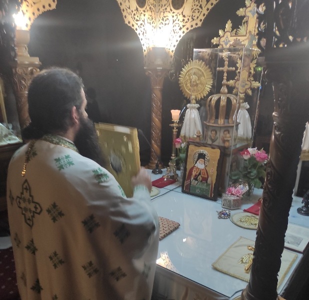 Κατά την διάρκεια της Αγρυπνίας, πιστοί, τηρώντας τα ισχύοντα υγειονομικά πρωτόκολλα, προσήλθαν να προσκυνήσουν το απότμημα του Ιερού Λειψάνου του Αγίου, το οποίο φυλάσσεται μόνιμα στο Ι. Επισκοπικό Παρεκκλήσιο και να συμμετάσχουν στις ιερές Ακολουθίες.