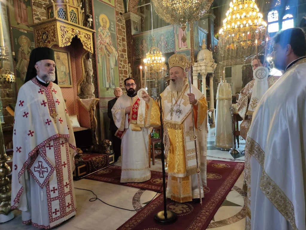 Την κυριώνυμη ημέρα της Εορτής ο Σεβασμιώτατος χοροστάτησε στον Όρθρο και προεξήρχε στη Θεία λειτουργία στον Ενοριακό Ι. Ναό Κοιμ. Θεοτόκου της γενετείρας του Βασιλικού, με συλλειτουργούς τον Πρωτοσύγκελλό του Αρχιμ. Νικόδημο Ευσταθίου, τον Εφημέριο της Ενορίας Πρωτοπρεσβ. Σταμάτιο Μπασδέκη και τους Διακ. Σταύρο Καλαφάτη και Χρήστο Ραμαντανάκη.