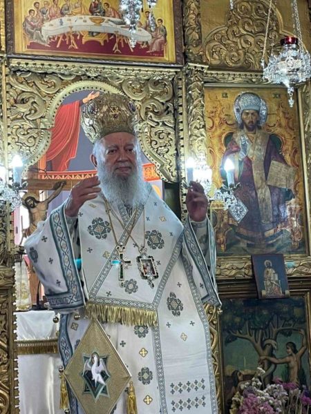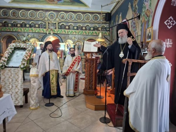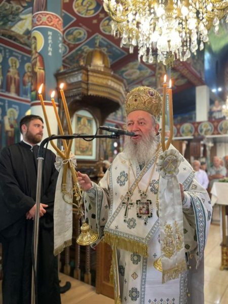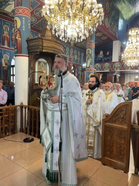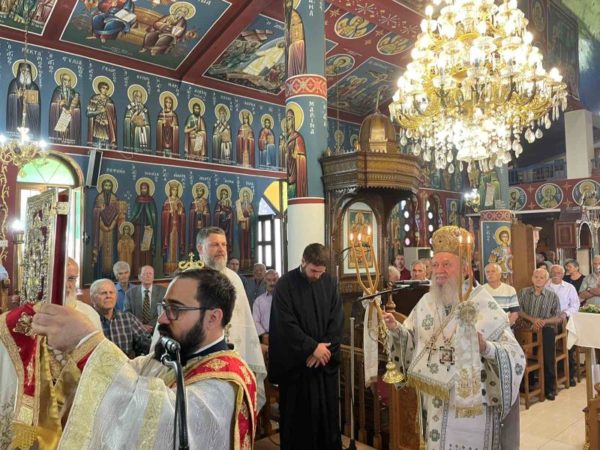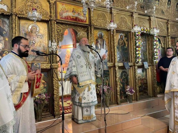 Εκεί, ο Σεβασμιώτατος, κηρύσσοντας τον θείο λόγο, ανέπτυξε προς τους εκκλησιασθέντες την τελείωση των ιερών μυστηρίων της Εκκλησίας από το Άγιο Πνεύμα.