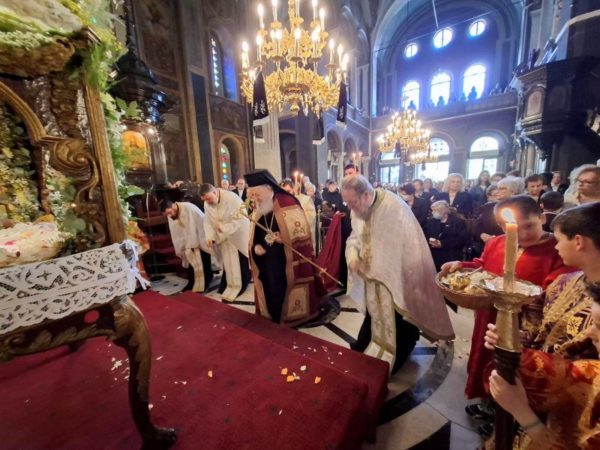 Το πρωί της Μεγάλης Παρασκευής, αφού ο Σεβασμιώτατος κ. Χρυσόστομος προσκύνησε τον Επιτάφιο της Ενορίας Αγ. Παρασκευής πολιούχου Χαλκίδος, η οποία εκπληρώνει τις λατρευτικές της ανάγκες στην αίθουσα εκδηλώσεων της Ιεράς Μητροπόλεως μέχρι την ολοκλήρωση των αναστηλωτικών έργων του παλαιοχριστιανικού Ι. Ναού της, μετέβη στον Ι. Ναό Αγίου Νικολάου Χαλκίδος, όπου συμπροσευχήθηκε από του Ιερού Βήματος κατά τις Ακολουθίες των Μεγάλων Ωρών, τις οποίες τέλεσαν οι Ιερείς του Ναού και εν συνεχεία χοροστάτησε στον Εσπερινό της Αποκαθηλώσεως, με την παρουσία πολλών ευσεβών χριστιανών, που μέχρι αργά το απόγευμα συνέρρεαν να προσκυνήσουν τον ιερό Επιτάφιο.