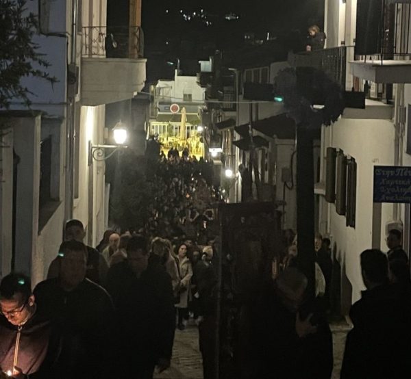 Αμέσως μετά, ο Σεβασμιώτατος κ. Χρυσόστομος, ανεχώρησε για την Βόρειο Εύβοια κι από εκεί για την Σκιάθο, όπου έφθασε κατά τις πρώτες πρωινές ώρες, κατά τις οποίες τελείται στις Ενορίες του νησιού η ακολουθία του Επιταφίου κατά το κολλυβαδικό τυπικό. Συγκεκριμένα, ο Σεβασμιώτατος προέστη στην ακολουθία που ετελέσθη στον Ι. Ναό Τριών Ιεραρχών Σκιάθου και στη λιτάνευση του Επιταφίου, που με κατάνυξη και ιερό παλμό, τον συνόδευσαν εκατοντάδες Σκιαθίτες και παρεπίδημοι χριστιανοί μέχρι την ανατολή του ηλίου.