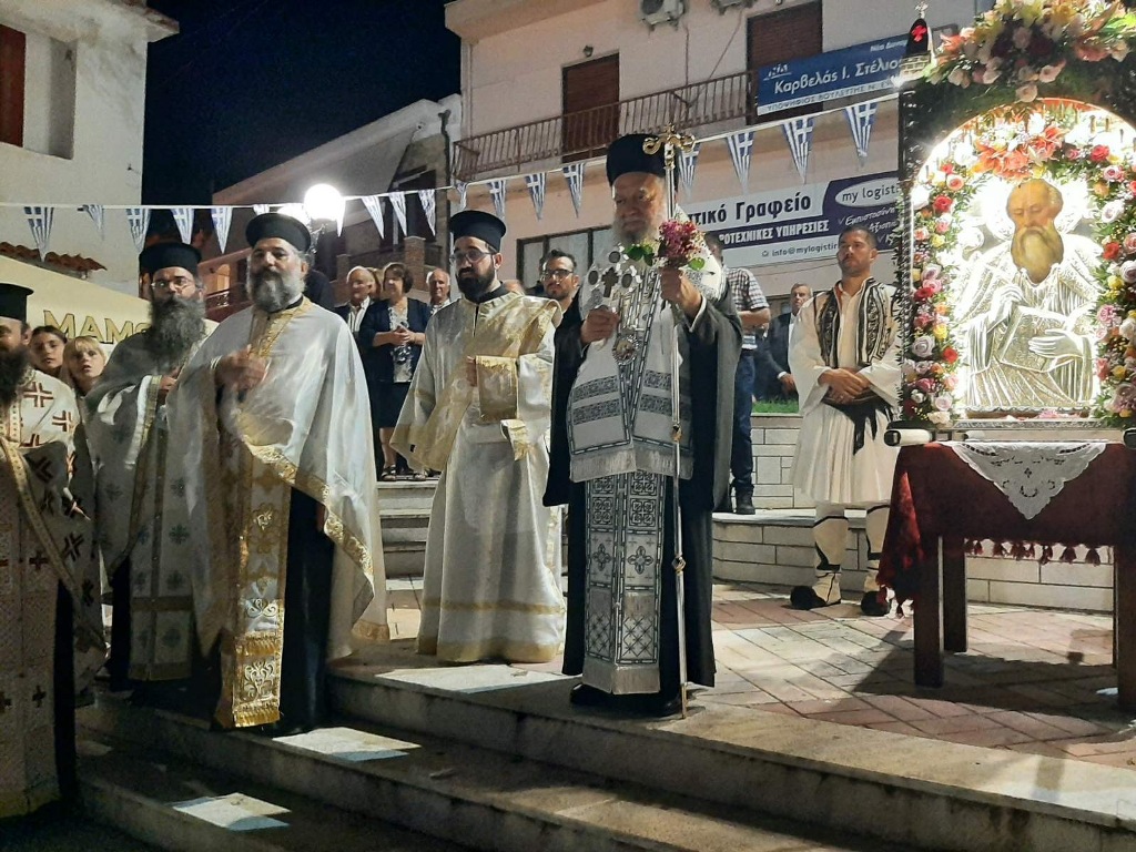 Στον πανηγυρίζοντα Ενοριακό Ιερό Ναό του Μαντουδίου, την παραμονή χοροστάτησε κατά τον Μεγάλο Εσπερινό ο Σεβασμιώτατος Μητροπολίτης Χαλκίδος κ. Χρυσόστομος, πλαισιούμενος από πολλούς Κληρικούς, με επικεφαλής τον Προϊστάμενο του Μητροπολιτικού Ιερού Ναού Αγίυ Δημητρίου Χαλκίδος Αρχιμ. Αιμιλιανό Χρήστου.
