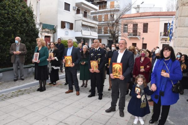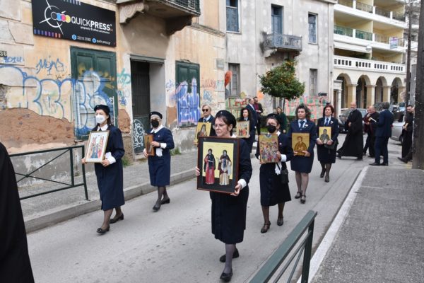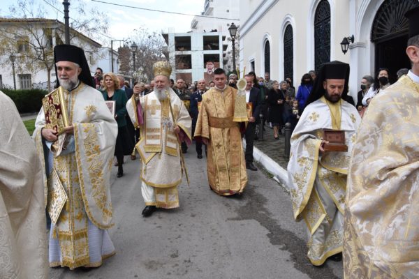 Πριν την Απόλυση της Θείας Λειτουργίας τελέσθηκε μνημόσυνο υπέρ αναπαύσεως των βιαίως κοιμηθέντων στο σιδηροδρομικό δυστύχημα των Τεμπών, όπως όρισε η Ιερά Σύνοδος της Εκκλησιάς της Ελλάδος και των κεκοιμημένων Μητροπολιτών Χαλκίδος, ενώ αμέσως μετά έλαβε χώρα η καθιερωμένη Λιτάνευση των Ιερών Εικόνων, πέριξ του Ιερού Ναού, στο τέλος της οποίας, κατά την τάξη, ο Σεβασμιώτατος ανέγνωσε το σχετικό απόσπασμα από το Συνοδικό της Ορθοδοξίας.