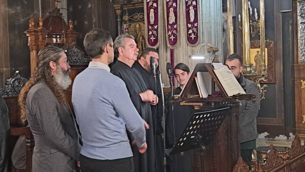 Τους ύμνους της ακολουθίας απέδωσαν με πιστώτητα στο πατροπαράδοτο βυζαντινό μέλος και με μεγάλη επιτυχία ο φιλοξενούμενος στη Χαλκίδα βυζαντινός χορός γυναικών «Αι άδουσαι», από το Βόλο, με επικεφαλής την Δρ. Σέβη Μαζέρα-Μάμαλη και ο χορός γυναικών της Σχολής Βυζαντινής Μουσικής της Ι.Μητροπόλεως Χαλκίδος «Γυναικών Ηχήματα» υπό τη διεύθυνση της Καθηγήτριας κ. Μαρίας Καψάλη.