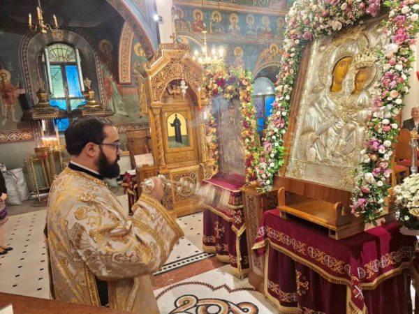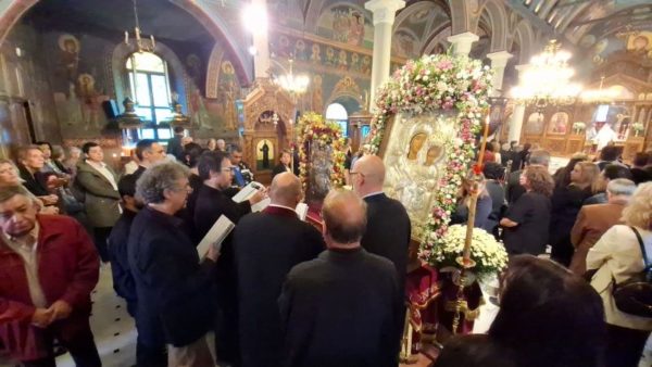 Ο Ι. Ναός ήταν κατάμεστος από χριστιανούς όλης της Χαλκίδος, οι οποίοι προστρέχουν αυτές τις ημέρες στο θαυματουργό εικόνισμα της Θεοτόκου Οδηγητρίας, που φιλοξενείται και θα συνεορτάσει με τον προστάτη Άγιο της Ενορίας.