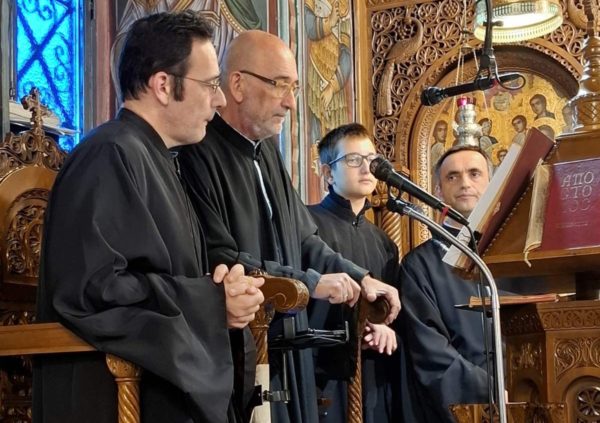 Έψαλλαν ο Πρωτοψάλτης της Ενορίας και Καθηγητής της Σχολής Βυζαντινής Μουσικής της Ι. Μητροπόλεως Χαλκίδος κ. Γεώργιος Καραγκούνης, ο Λαμπαδάριος της Ενορίας κ. Ιωάννης Δέδες πλαισιούμενοι από σπουδαστές της Σχολής.
