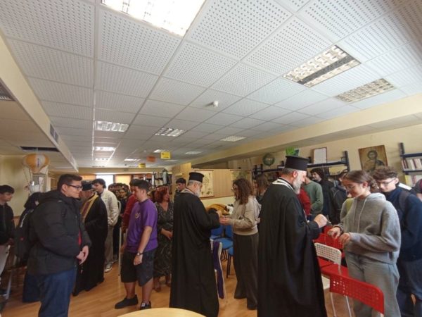 Εκεί, ο Σεβασμιώτατος τέλεσε το ιερό μυστήριο του Ευχελαίου υπέρ της σχολικής κοινότητας, όπως έχει καθιερωθεί τα τελευταία χρόνια, κατά την περίοδο της Μεγάλης Τεσσαρακοστής.
