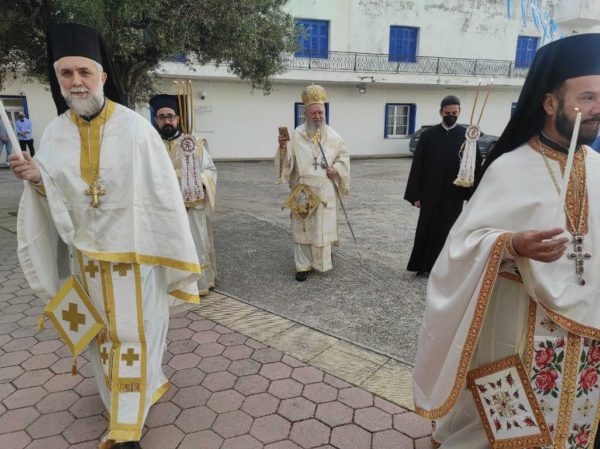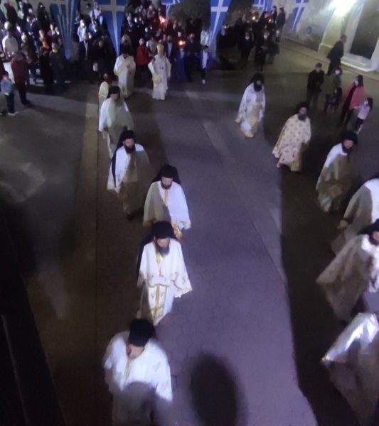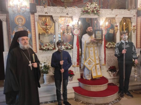 Μετά τον Εσπερινό πραγματοποιήθηκε και η Λιτάνευση της Ιεράς Εικόνος της Παναγίας, ανά τας οδούς της περιοχής.