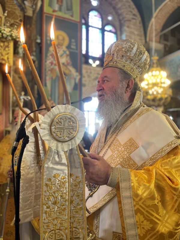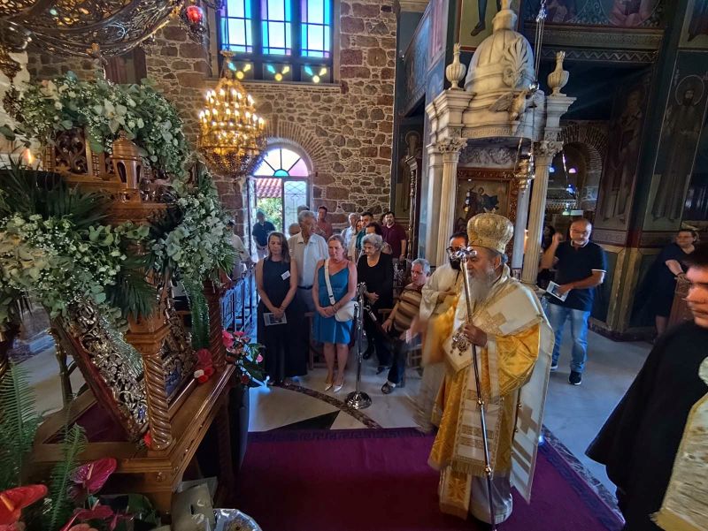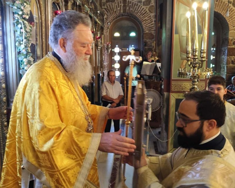 Μαζί με τους κατακλύσαντες προσκυνητές, την Κυριακή 22 Ιουνίου 2025, τρίτη ημέρα παραμονής της θαυματουργού ιεράς εικόνος της Παναγίας Χοζοβιωτίσσης, στον Ενοριακό Ι. Ναό Κοιμήσεως Θεοτόκου Βασιλικού Χαλκίδος, ο Σεβασμιώτατος Ποιμενάρχης, Μητροπολίτης Χαλκίδος κ. Χρυσόστομος χοροστάτησε στον Όρθρο, προέστη στη Θεία Λειτουργία και κήρυξε τον θείο λόγο.